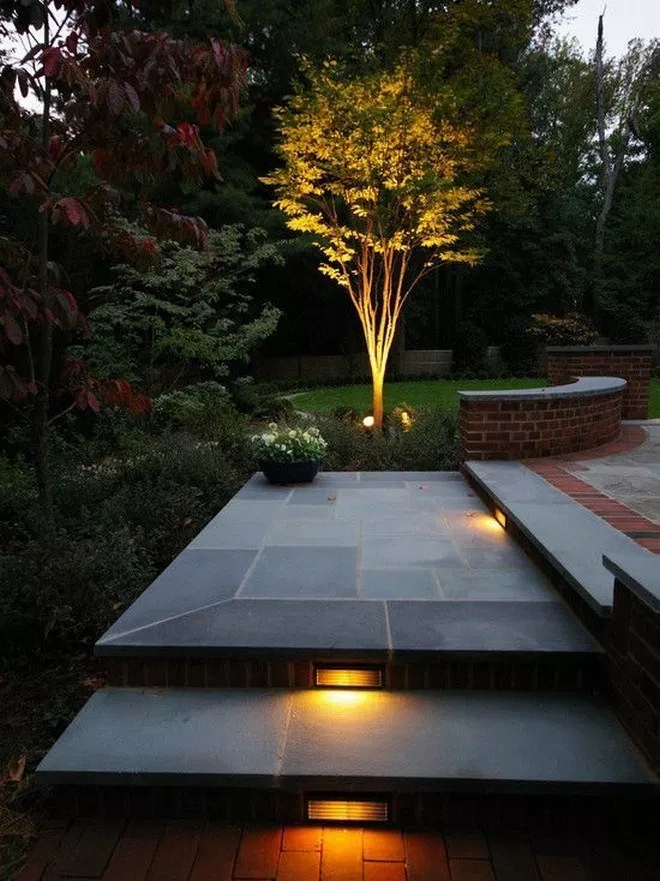 lépcsővilágítások. A kerti lépcső így már nem csak