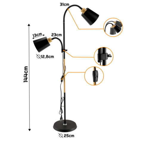Berge London fa/fekete színű állólámpa állítható magassággal 145-175 cm 2xE27-es foglalattal - Perfectled Kft.