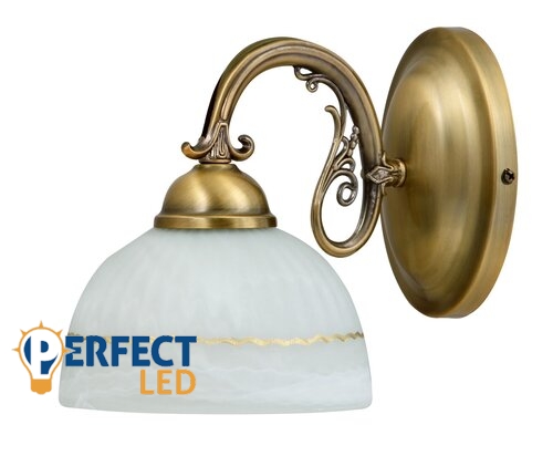 Klasszikus megjelenésű fali lámpa 1 db foglalattal. 22 cm a faltól mért távolsága, 14 cm magas, bronz színű fémből készített lámpatest 9 cm átmérőjű, diszkrét bronz mintás, fehér opálüveg búrával. A lámpatest E27-es foglalatú, max. 40W teljesítményű  halogén vagy energiatakarékos fényforrással használható.