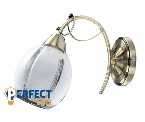 Klasszikus megjelenésű fali lámpa 1 db foglalattal. 26 cm a faltól mért távolsága, 11,5 cm magas, bronz színű fém test üveg lámpabúrával. A lámpatest E27-es fogalatkialakítású, max. 60W teljesítményű fényforrással használható.