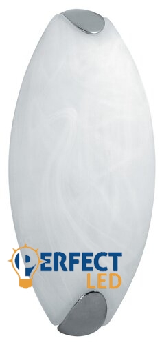 Modern megjelenésű fürdőszobai fali lámpa, 1 darab E27-es típusú foglalattal. 26 cm magas, fémből készített, króm színű lámpatesttel, 12 cm széles, fehér alabástrom üvegbúrával. A lámpatest max. 60W teljesítményű, E27-es foglalatú  halogén vagy energiatakarékos fényforrással is használható.