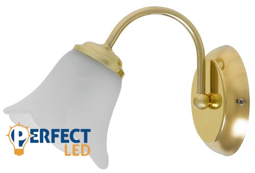 Klasszikus megjelenésű fali lámpa 1 db foglalattal. 26 cm kinyúlású, 13 cm magas, arany színű fémből készített lámpatest 13 cm átmérőjű, fehér opálüvegbúrával. A lámpatest E14-es foglalatú, max. 40W teljesítményű  halogén vagy energiatakarékos fényforrással használható.