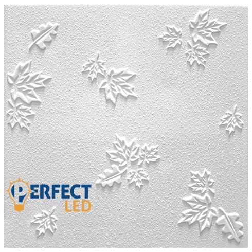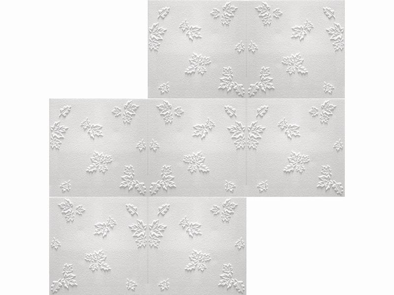 A Marbet polisztirol mennyezeti burkolólapból 1 négyzetméter 4 darab 50 cm x 50 cm-es burkolólapot tartalmaz. A beépített mennyezeti burkolólapok egymás melletti mintáját a nagyítható képeken tekinthetik meg.