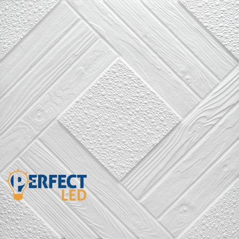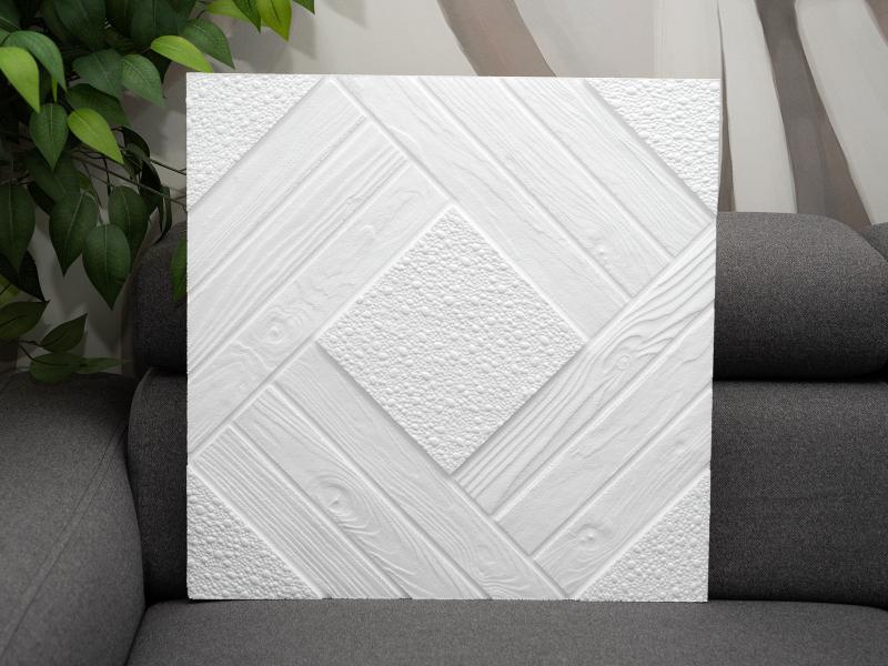 A Marbet polisztirol mennyezeti burkolólapból 1 négyzetméter 4 darab 50 cm x 50 cm-es burkolólapot tartalmaz. A beépített mennyezeti burkolólapok egymás melletti mintáját a nagytíható képeken tekinthetik meg.