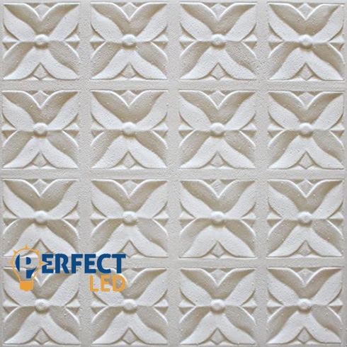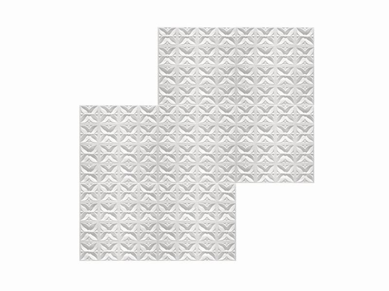 A Marbet polisztirol mennyezeti burkolólapból 1 négyzetméter 4 darab 50 cm x 50 cm-es burkolólapot tartalmaz. A beépített mennyezeti burkolólapok egymás melletti mintáját a nagyítható képeken tekinthetik meg.