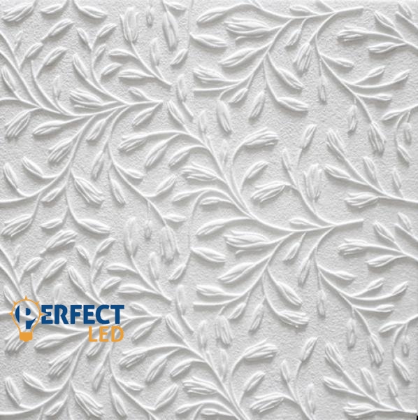 A Marbet polisztirol mennyezeti burkolólapból 1 négyzetméter 4 darab 50 cm x 50 cm-es burkolólapot tartalmaz. A beépített mennyezeti burkolólapok egymás melletti mintáját a nagyítható képeken tekinthetik meg.