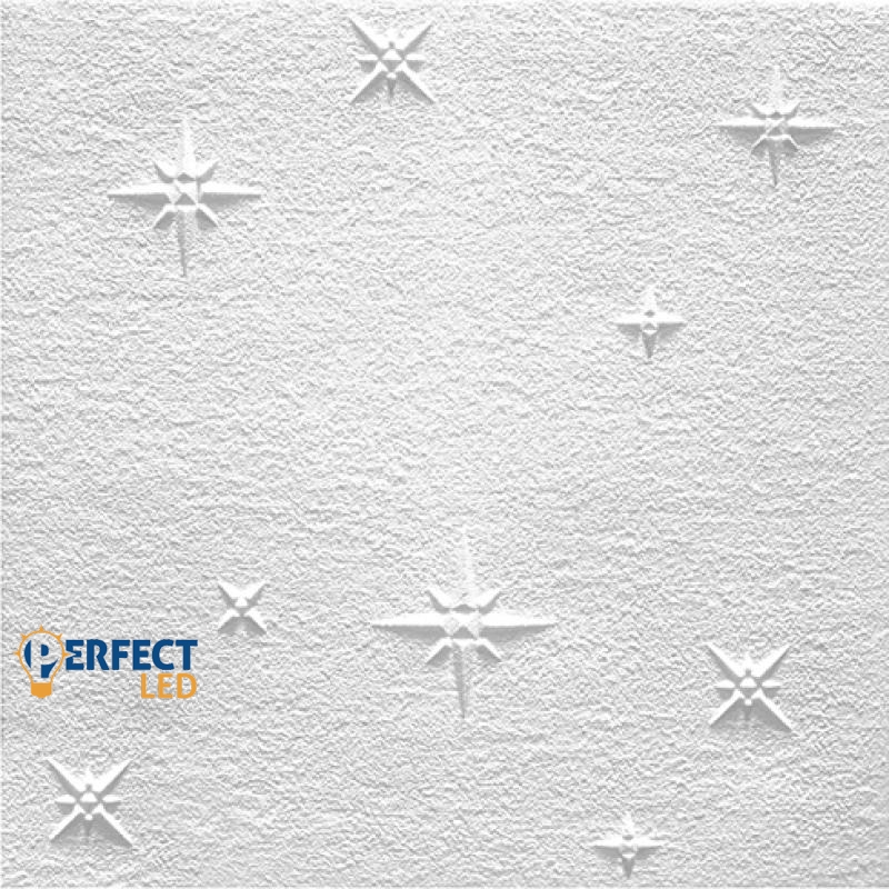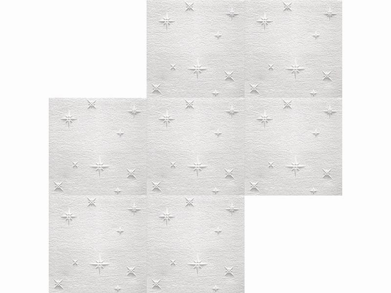 A Marbet polisztirol mennyezeti burkolólapból 1 négyzetméter 4 darab 50 cm x 50 cm-es burkolólapot tartalmaz. A beépített mennyezeti burkolólapok egymás melletti mintáját a nagyítható képeken tekinthetik meg.